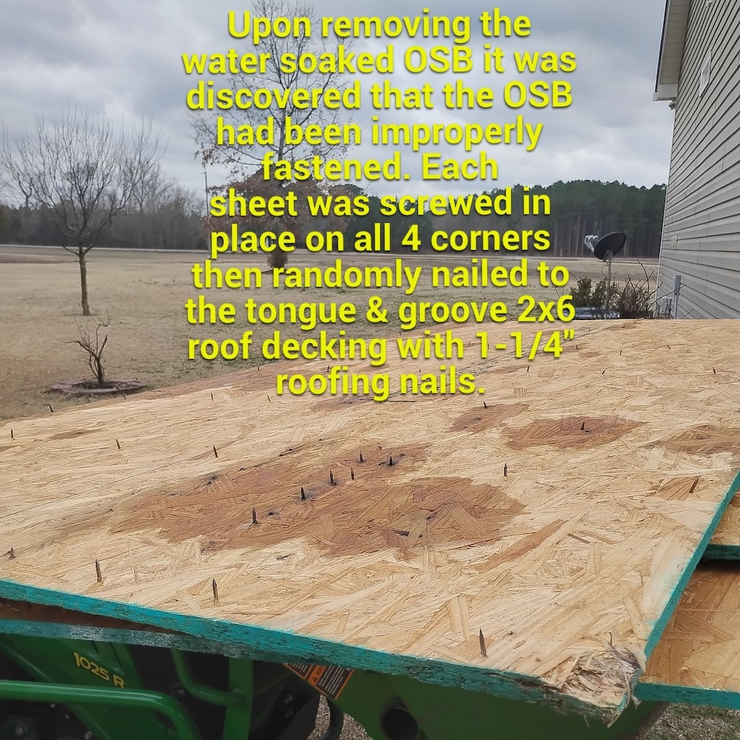 This project began when a homeowner in Vanceboro was referred to us after experiencing ongoing roof leaks on a recently constructed back porch addition. The porch had been built only a few months prior, but the homeowner reported that the roof had been leaking almost from the beginning. After dealing with the issue for about three months and receiving only temporary patch attempts, they decided it was time for a proper roof replacement to permanently solve the problem.